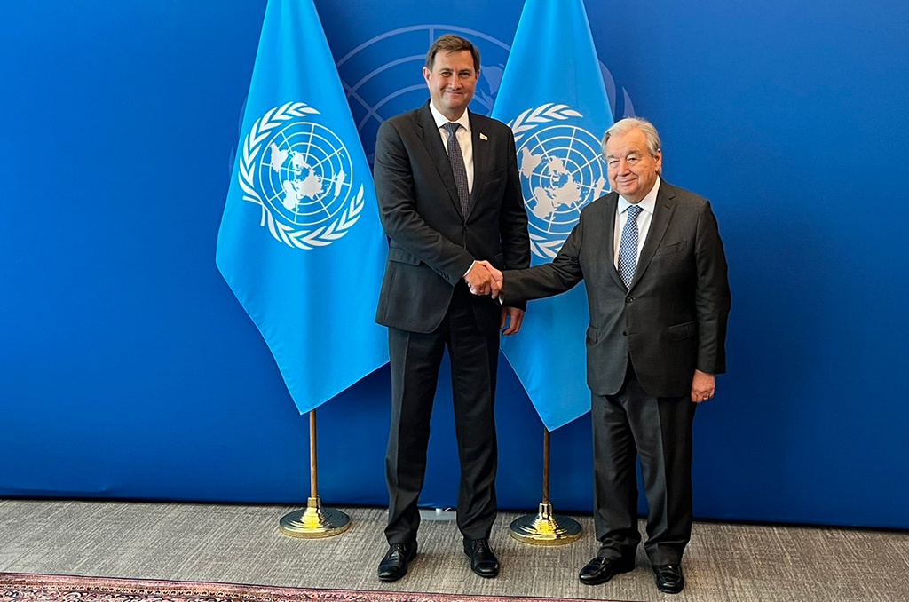 Адбылася сустрэча Міністра з Генеральным сакратаром ААН Антоніу Гутэрышам. Абмеркаваны пытанні ўмацавання цэнтральнай ролі ААН у забеспячэнні міжнароднай бяспекі і ўстойлівага развіцця, а таксама неабходнасць выпрацоўкі калектыўных рашэнняў па актуальных выкліках сучаснасці. Беларускі бок пацвердзіў гатоўнасць рабіць унёсак у кансалідацыю намаганняў дзяржаў у рамках сапраўднага шматбаковага ўзаемадзеяння.