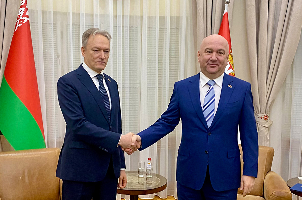 13 лютага 2026 г. Надзвычайны і Паўнамоцны Пасол Рэспублікі Беларусь у Рэспубліцы Сербія Сяргей Маліноўскі сустрэўся з Міністрам урада Сербіі («міністрам без партфеля») Ненадам Паповічам, адказным за міжнароднае эканамічнае супрацоўніцтва і грамадскае становішча царквы ў краіне і за мяжой.