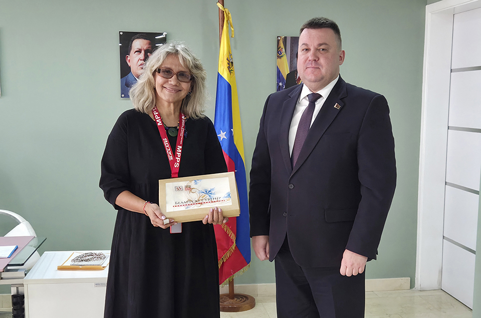27 лютага 2026 г. Надзвычайны і Паўнамоцны Пасол Рэспублікі Беларусь у Баліварыянскай Рэспубліцы Венесуэла Дзмітрый Дзеравінскі сустрэўся з Міністрам аховы здароўя Венесуэлы Нурамі Хасэфай Гутыерэс Гансалес.
