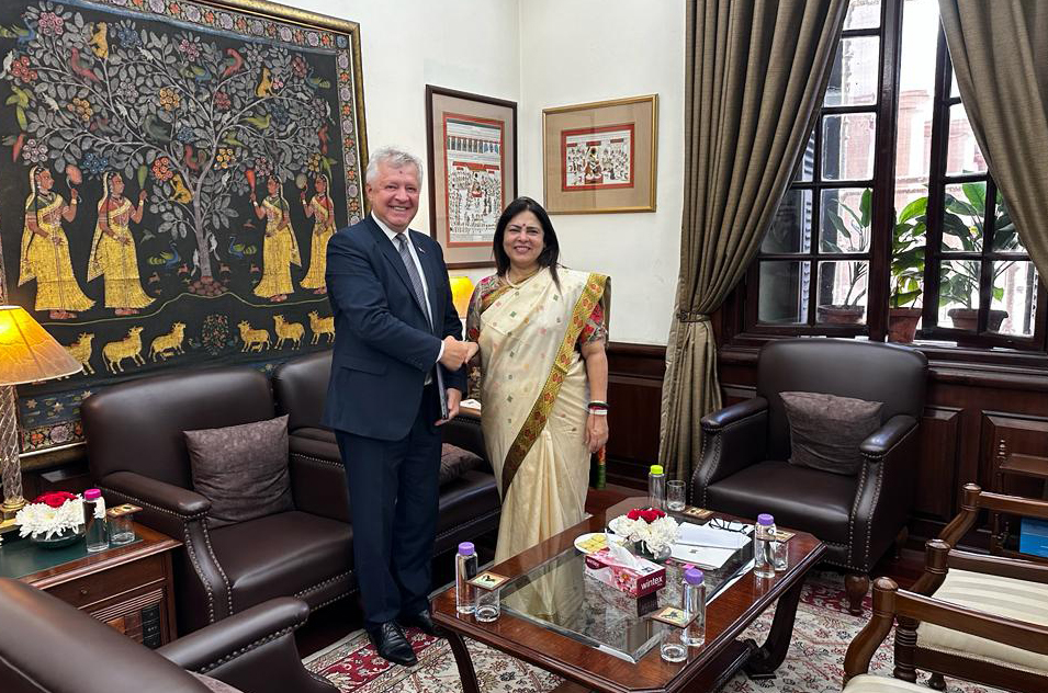 5 апреля 2023 г. состоялась встреча Чрезвычайного и Полномочного Посла Республики Беларусь в Республике Индия Андрея Ржеусского с Государственным министром иностранных дел Индии Минакаши Лекхи.