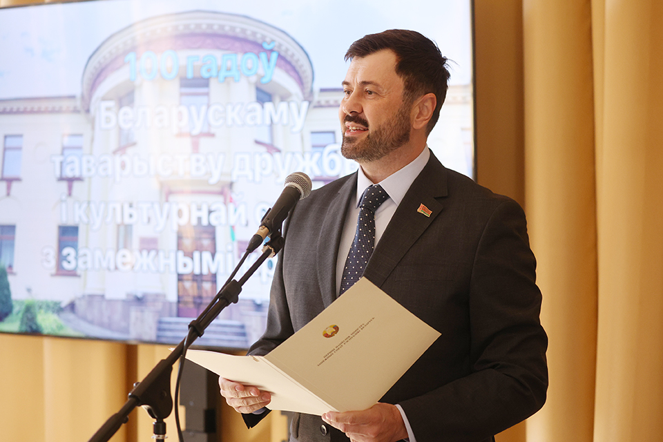 14 апреля 2026 г. первый заместитель Министра иностранных дел Республики Беларусь Сергей Лукашевич принял участие в торжественном мероприятии в Белорусском обществе дружбы и культурной связи с зарубежными странами по случаю 100-летнего юбилея организации.