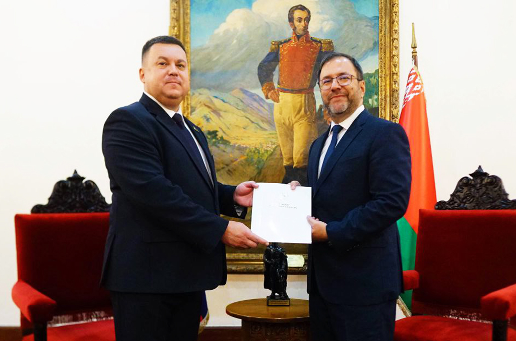 11 жніўня 2025 г. Надзвычайны і Паўнамоцны Пасол Рэспублікі Беларусь у Баліварыянскай Рэспубліцы Венесуэла Дзмітрый Дзеравінскі ўручыў копіі даверчых лістоў Міністру замежных спраў Венесуэлы Івану Хілю Пінта.