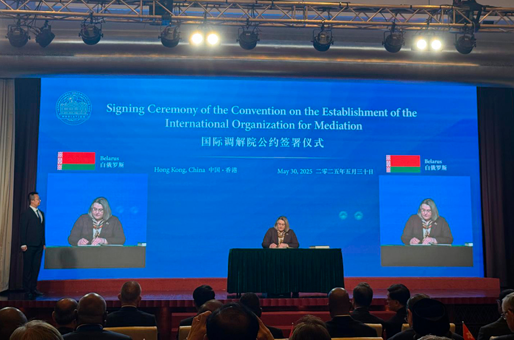 30 мая 2025 г. у Ганконгу (Спецыяльны адміністрацыйны раён Кітайскай Народнай Рэспублікі) адбылося ўрачыстае падпісанне Канвенцыі аб заснаванні Міжнароднай арганізацыі па медыяцыі.