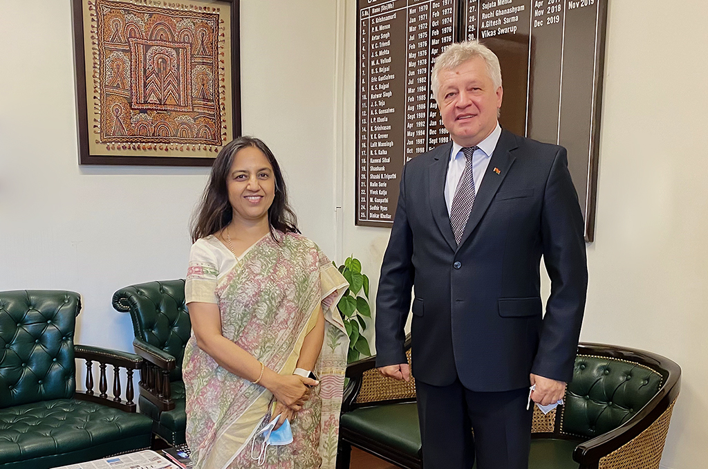On July 9, 2021, Ambassador Extraordinary and Plenipotentiary of the Republic of Belarus to the Republic of India Andrei Rzheussky met with the Secretary of the Ministry of Foreign Affairs of India Reenat Sandhu.