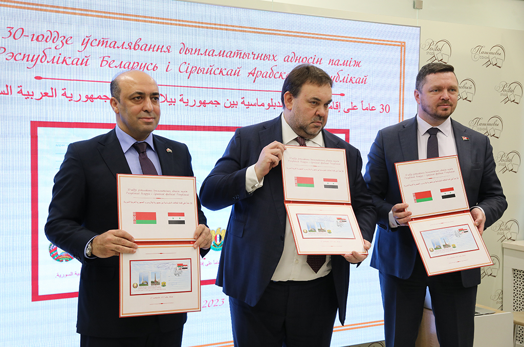 27 ноября 2023 г. заместитель Министра иностранных дел Республики Беларусь Евгений Шестаков принял участие в торжественной церемонии гашения юбилейной марки по случаю 30-летия установления белорусско-сирийских дипломатических отношений.