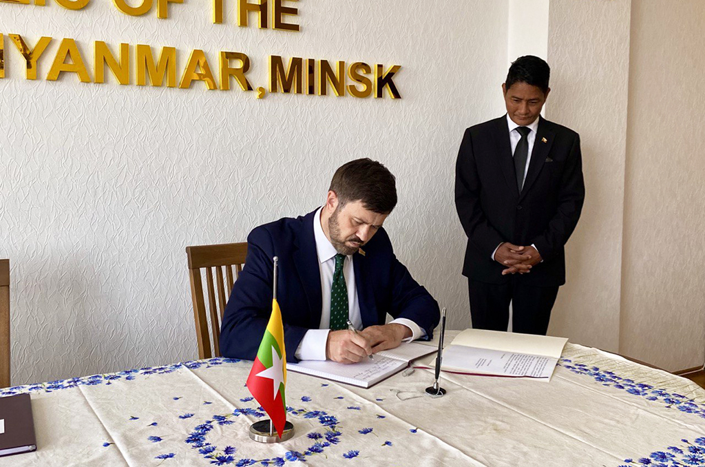 11 августа 2025 г. Первый заместитель Министра иностранных дел Республики Беларусь Сергей Лукашевич посетил Генеральное консульство Республики Союз Мьянма в Минске и оставил запись в книге соболезнований в связи с кончиной бывшего исполняющего обязанности Президента и Вице-президента Мьянмы Мьин Све.