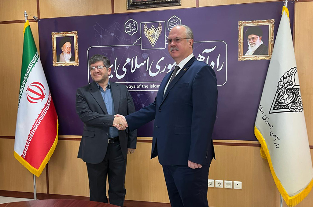 12 апреля 2025 г. Чрезвычайный и Полномочный Посол Республики Беларусь в Исламской Республике Иран Дмитрий Кольцов встретился с заместителем Министра дорог и городского развития, Генеральным директором Компании железных дорог Ирана Джаббар-Али Закери.