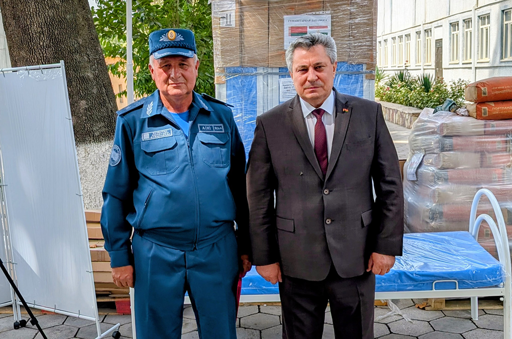 3 сентября 2025 г. Чрезвычайный и Полномочный Посол Республики Беларусь в Республике Таджикистан Виктор Денисенко принял участие в церемонии передачи в соответствии с решением Правительства Беларуси гуманитарной помощи для граждан Республики Таджикистан, пострадавших в ходе землетрясения в районах Рашт и Таджикабад.