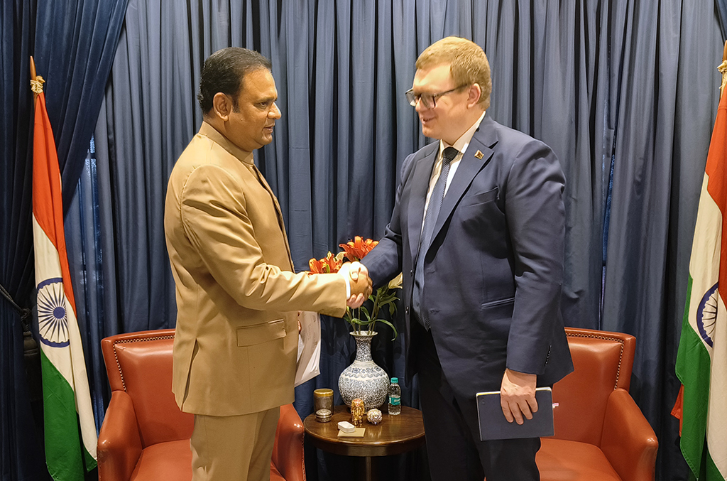 11 марта 2025 г. Генеральный консул Республики Беларусь в г. Мумбаи Александр Мацуков провел встречу со Спикером Законодательного собрания штата Махараштра Рахулом Нарвекаром, а также Председателем Законодательного совета этого штата Рамом Шинде.